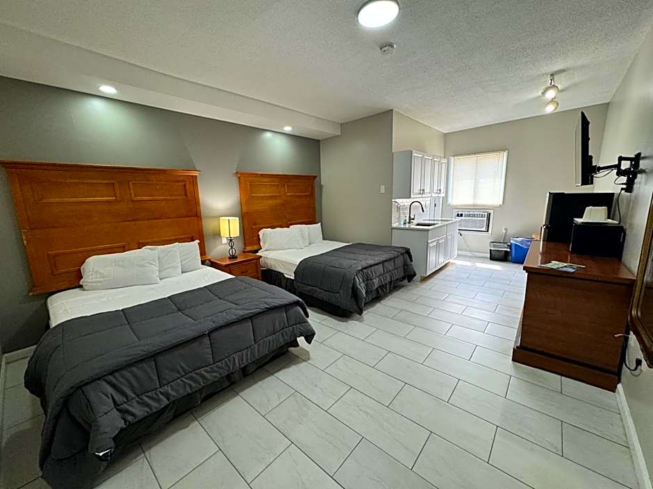 This room consists of two queen beds, a table and two chairs, refrigerator and a microwave. It also comes with a bathroom.
