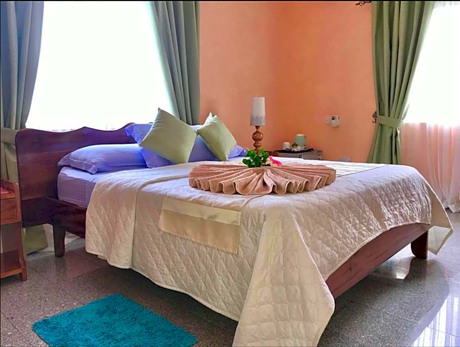 The hotel offers a Double Room with Two Double Beds, which is a family room that can accommodate 2 adults and 1 child. This room does not allow smoking and has two double beds. They also have a Standard King Room that can accommodate the same number of guests. This room does not allow smoking and has one king size bed.