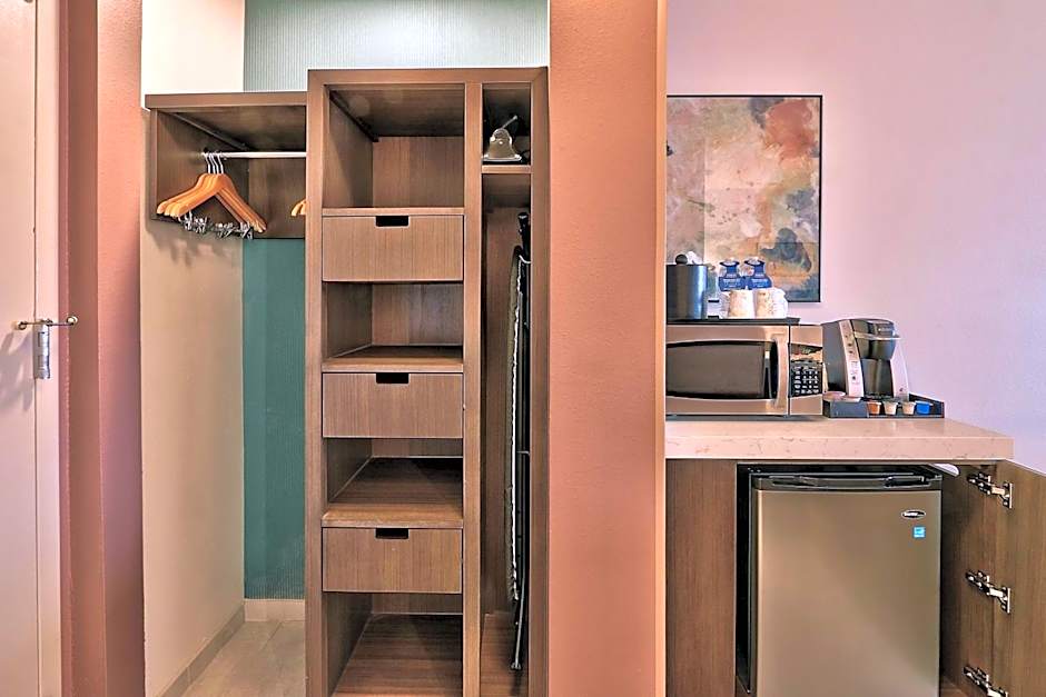 Exceptionally clean. Snacks, short order food & Beverage option for fee but options looked appealing. Quiet. Comfortable beds etc. Room spacious. Parking convenient.