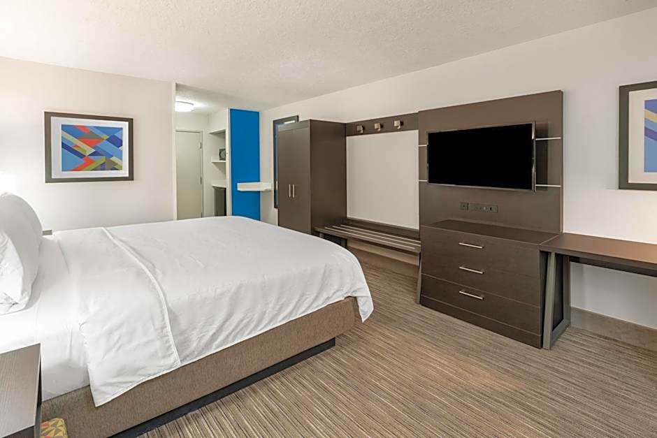 The Holiday Inn Express Hotel & Suites Albuquerque - North Balloon Fiesta Park offers a variety of room options. These include Queen Rooms with Two Queen Beds, Queen Suites with Sofa Beds, TwinDouble rooms, King Rooms, King Suites with Sofa Beds, Double Rooms with Bath Tubs - Disability Access, and King Rooms with Roll-In Showers - Disability Access. All rooms have a size of 301 sqft and smoking is not allowed. The rooms can accommodate between 2 to 6 adults and 1 to 4 children, depending on the room type.