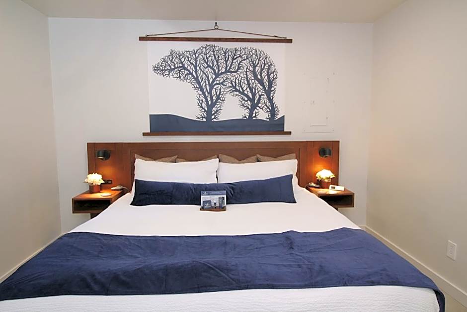 This one-bedroom cabin includes a king-sized bed, full kitchen, BBQ grill, covered deck and a full coffee bar.