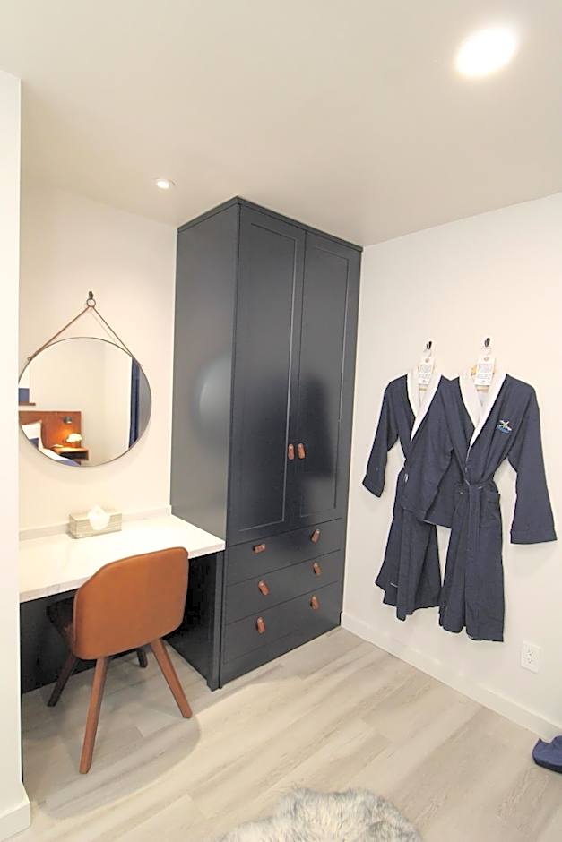 This one bedroom cabin is accessible for guests with reduced mobility and includes a full kitchen, BBQ grill, covered deck and a full coffee bar.