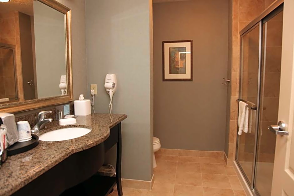 This mobility and hearing accessible, non-smoking room features one king-sized bed, and an accessible bath tub. The room/suite also has a visual alarm and notification devices for the doorbell or door knock and incoming phone calls. The room features comfortable sofa bed, microwave, refrigerator, wet bar, a HDTV, and easy to operate alarm clock/radio. The free WiFi access will help you stay connected while on the road. If you prefer not to work at the desk, you can use the convenient lapdesk instead. You'll also enjoy the convenience of having a coffeemaker with tea service and iron/ironing board in your room. Any corresponding photo may not reflect the specific accessible room type or room feature.