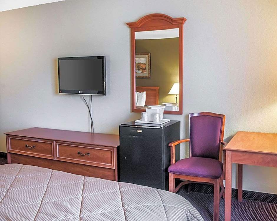 The room and the rest of the motel were clean and in good repair. The room had nice wood furniture in it and a mini-fridge that was plugged in and cold inside when I arrived. There were clean sheets and a blanket on the bed, which I appreciated because I get cold when I lie down and try to sleep in an air-conditioned room. There wasn't a lot to the free breakfast, but there was plenty of fresh hot coffee ready at 6:00AM, packets of instant hot cereal and a microwave oven, and a small bowl of mini cinnamon rolls instead of stale donuts, and I don't usually eat a lot for breakfast early in the morning.
