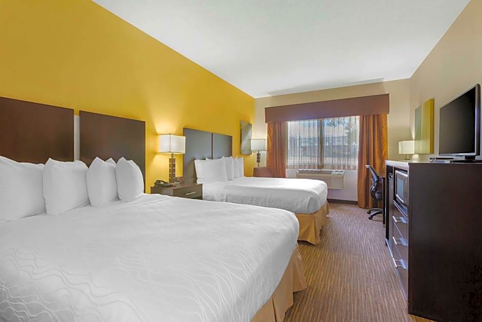 The hotel offers a variety of room types, including Queen Rooms with Two Queen Beds, a Queen Room with Roll-in Shower, a King Room, and a Mini Suite. The rooms range in size from 172 sqft to 291 sqft. Smoking is not allowed in any of the rooms. The occupancy of the rooms varies from 2 adults and 1 child to 4 adults and 3 children. The bed sizes include Queen and King beds, and some rooms also have a sofa bed. Some rooms are pet-friendly and some offer disability access.