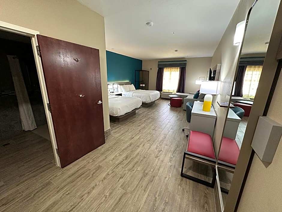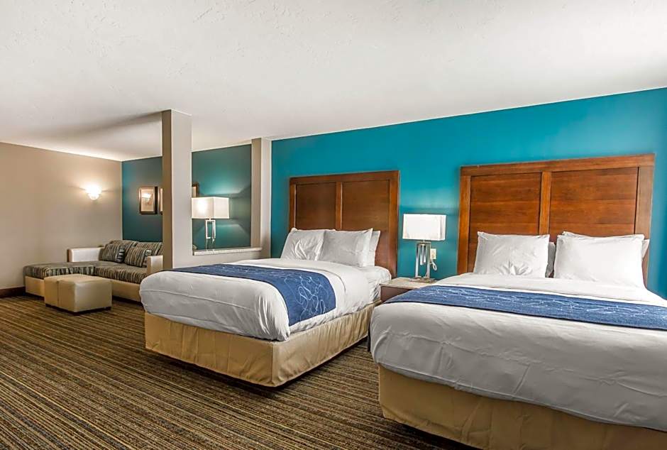 The Comfort Suites of Las Cruces I-25 North offers a variety of room options including queen suites with two queen beds, king suites with a sofa bed, and queen suites with a sofa bed and two queen beds. All rooms are non-smoking and have a size ranging from 420 to 570 square feet. The rooms can accommodate between 3 to 5 adults and 2 to 4 children, with bed options including sofa beds, queen size beds, and king size beds.