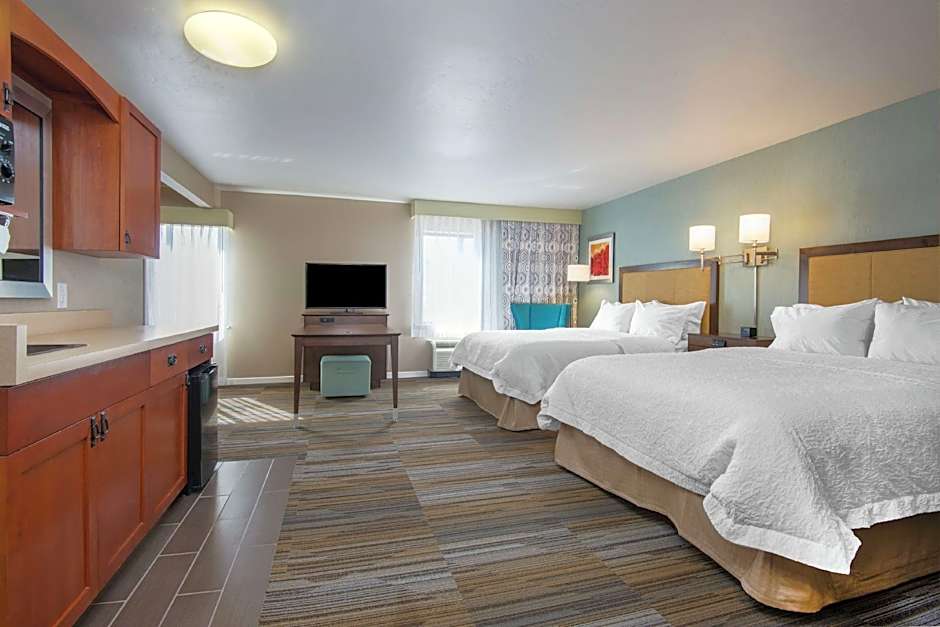 The Hampton Inn & Suites Los Alamos offers several types of rooms. These include One-Bedroom King Premium Suites, Suites, King Rooms, Queen Rooms with Two Queen Beds (some with disability access), and King Rooms with Bath Tub (also with disability and hearing accessibility). All rooms have a size of 301 or 398 sqft, do not allow smoking, and can accommodate either 4 or 5 adults, as well as 3 or 4 children. The bed sizes range from King to Queen.