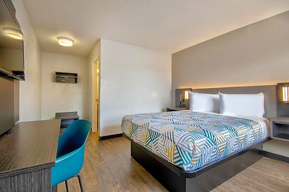 Motel 6 Santa Fe offers a straightforward, traveler-friendly base in Santa Fe, New Mexico, about 3,8mi from the city center. A sunlit outdoor pool and a terrace set the stage for easy downtime between adventures, while free WiFi and air conditioning keep comfort simple. Free private parking and on-site parking make arrivals a breeze, and the 24-hour front desk is ready to help with tips or directions. Pets are welcome at no extra charge, making it easy to bring furry travel companions along.