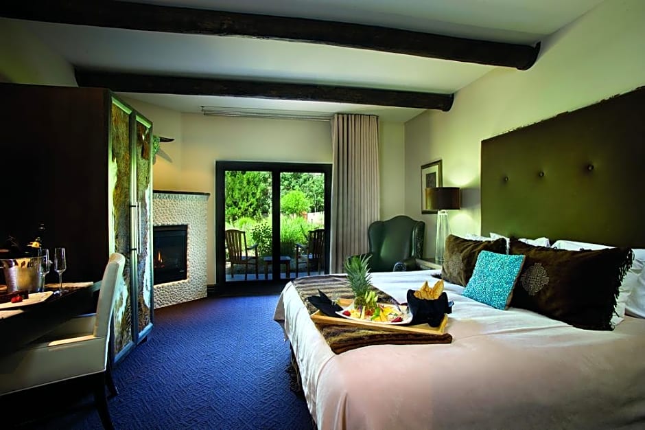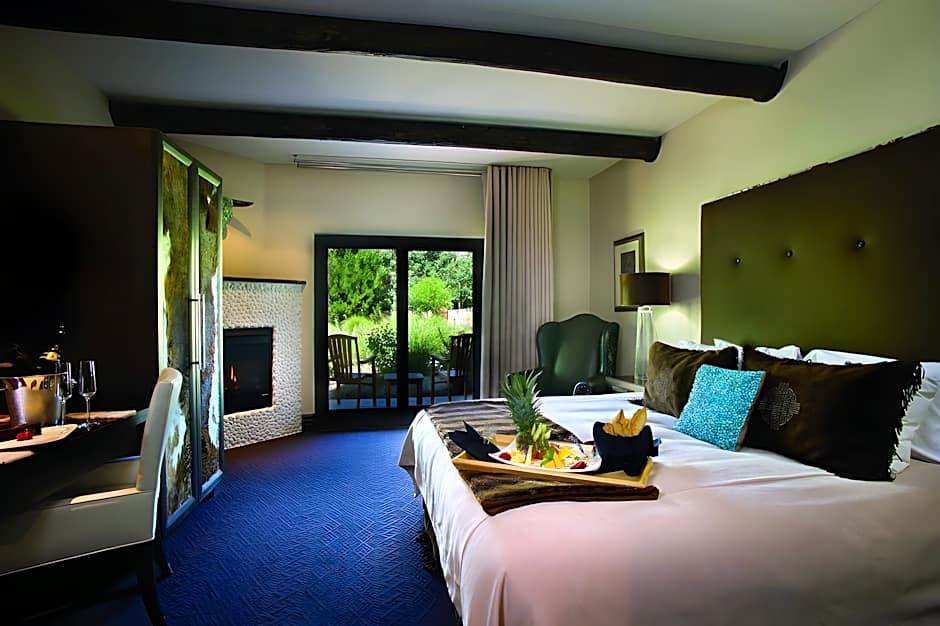 Beautiful exterior surroundings with charming, often dramatic architectural details. The staff were exceptional. We enjoyed the fireplace in the room.