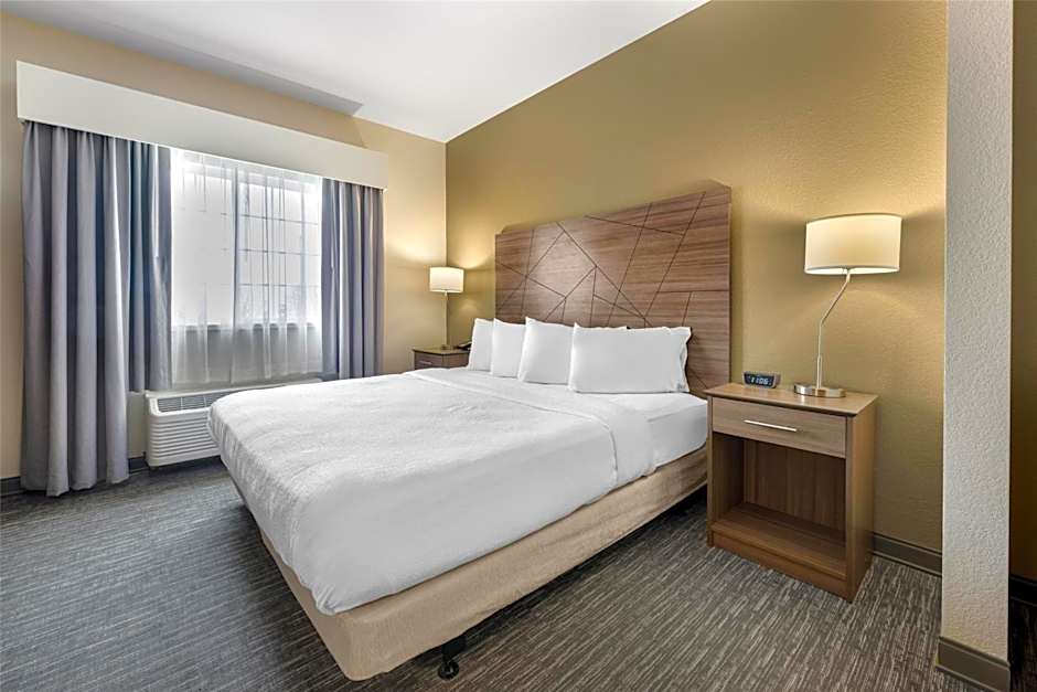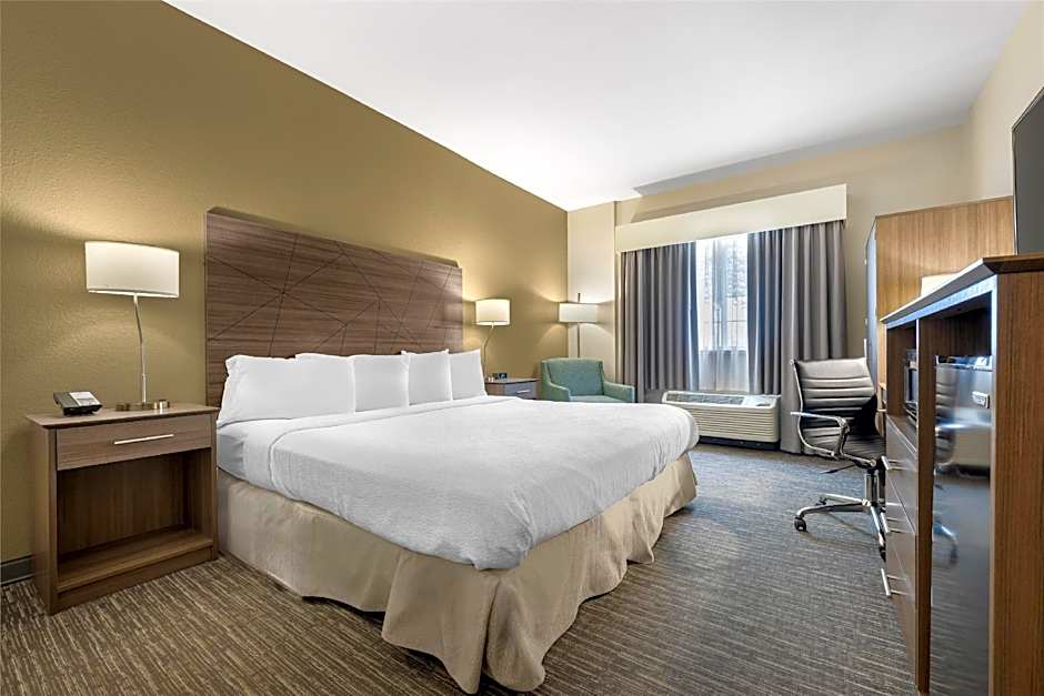 The Best Western Brockport Inn & Suites offers a variety of rooms including King Rooms with a king-size bed, King Suites with a king-size bed and a sofa bed, and Queen Rooms with two queen beds. All rooms are non-smoking and accommodate either 2 adults and 1 child or 4 adults and 3 children. Some rooms have accessibility features such as a mobility accessible tub.
