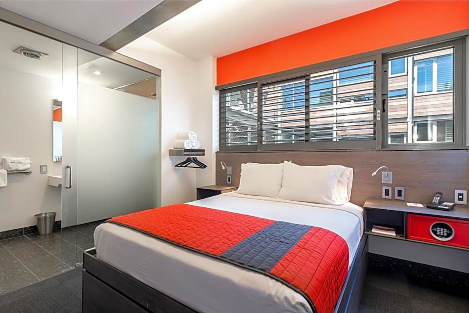 Everything was nice and clean, the room was small, as implied, but well-designed and functional. Hotel felt safe. Bed was good, shower was nice. Place is largely quiet and staff is very friendly. Nice little store next to the hotel to pickup beverages and snacks. Close to the Bedford Av. subway, lots of restaurants in the area.