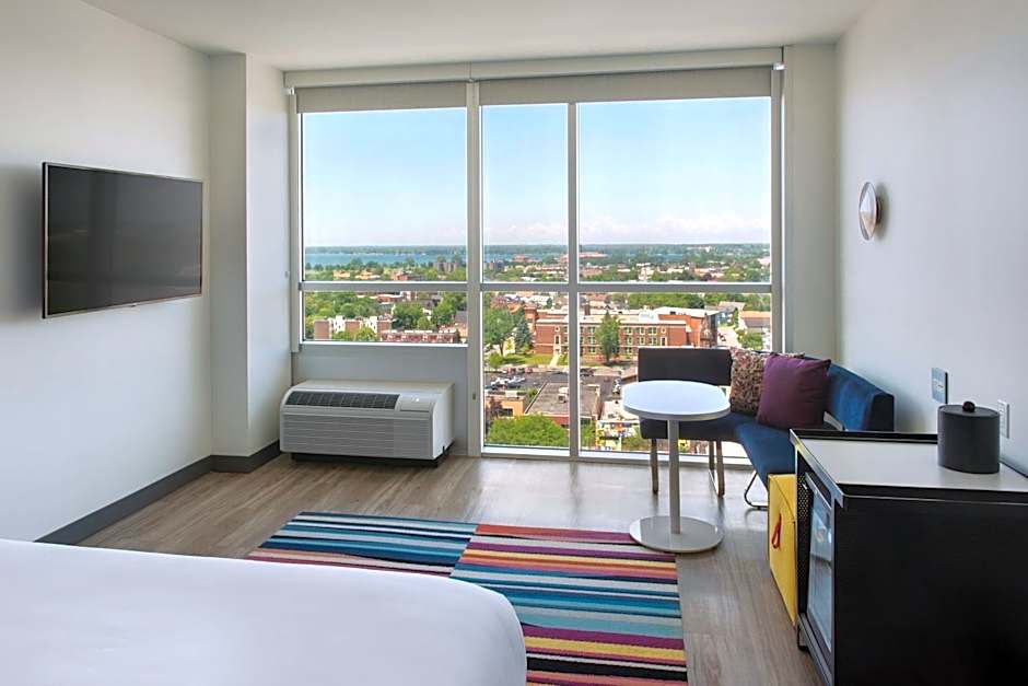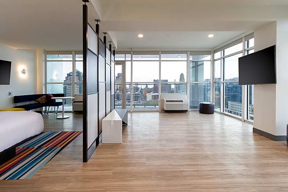 The base rate at Aloft Buffalo Downtown is approximately $169. Be informed that this can vary depending on your room choice and booking dates. Enter dates for a tailored price.
