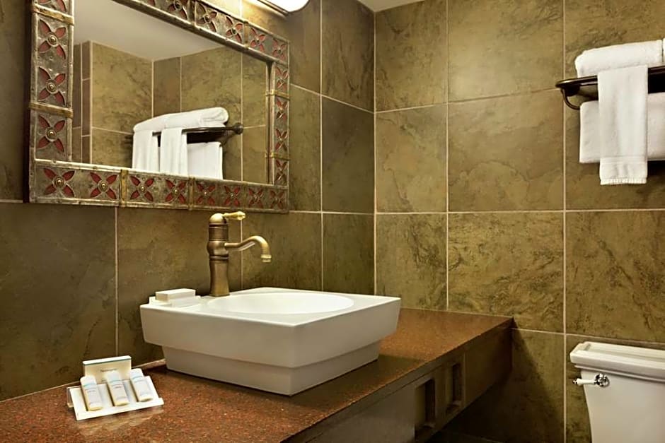 Living area, whirlpool, skylight, bar area, mini-fridge, microwave, 1014 sq. ft., classical ornate decor This spacious suite on the fourth floor offers a living area with sofa and chair, bar area with wine rack and mini refrigerator, and Keurig®coffeemaker. Enjoy a large bathroom with whirlpool, standup shower with heated lamps, double sinks, and skylight. You'll also get a large walk-in closet. Stay entertained with the flat-screen HDTV, catch up on work at the desk with ergonomic chair, and keep in touch with complimentary WiFi. Experience a comfortable night's sleep in the king-sized Serta Perfect Sleeper bed.