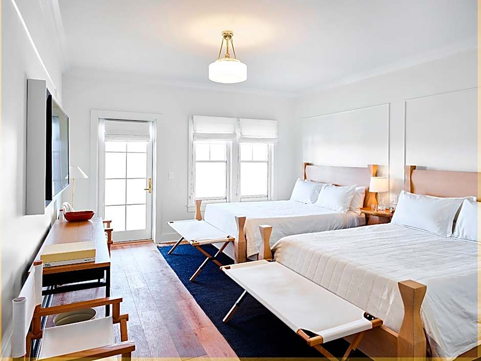 Unwind and relax in this welcoming room featuring two custom designed queen sized beds with 350 thread count linens for a cozy night’s sleep, a large wardrobe with a built-in full-length mirror, hard wood floors with beautiful area rugs, and a gorgeous bathroom which exhibits unlacquered brass fixtures, and a walk-in shower with glass doors. Pamper yourself with custom blended toiletries by American Medicinal Art's Born Bathing line and enjoy the robe and slippers that are also provided to maximize your comfort. You can also unwind in front of the 55-inch 4K HDTV with Sonifi and complimentary HBO or sit out on your peaceful balcony. Other conveniences include in room coffee and tea, in room safe, hi speed internet, USB charging ports, and a workstation.