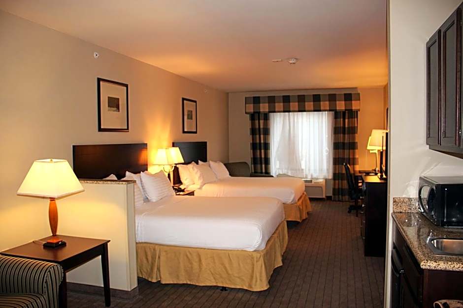 The Holiday Inn Express Hotel & Suites Syracuse North Airport Area offers a variety of room options. They have Queen Suites and Queen Rooms with Two Queen Beds that accommodate 4 adults and 3 children. They also have King Rooms and King Suites that accommodate 2 adults and 1 child. All rooms are non-smoking and range in size from 355 sqft to 527 sqft.
