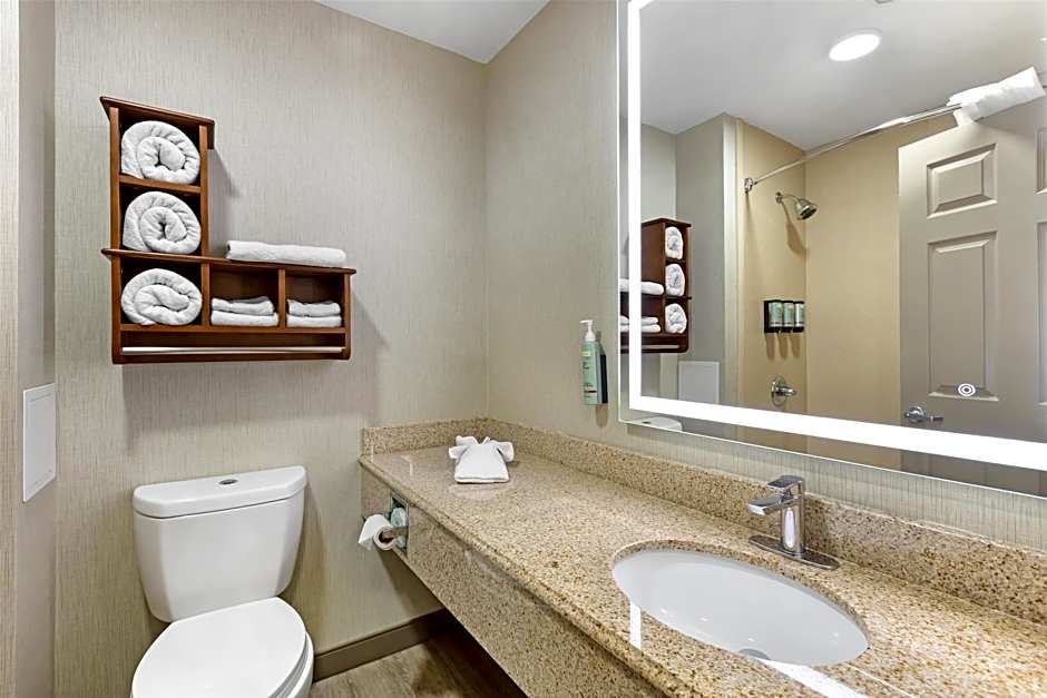 The hotel offers Queen Rooms with Two Queen Beds, King Rooms, and Deluxe Queen Rooms with Two Queen Beds. All rooms are non-smoking and have a size of 215 sqft. The Queen Rooms accommodate 4 adults and 3 children, while the King Rooms accommodate 2 adults and 2 children. The Deluxe Queen Rooms also accommodate 4 adults and 3 children. The beds in the rooms are either Queen size or King size. There are also two accessible rooms, one with a bath tub and one with a roll-in shower.