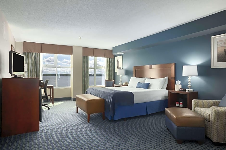 1 King Bed Deluxe Lake Front View Non-Smoking is 398 square feet and includes a king-size bed 150-183 width and is Wheelchair-accessible.