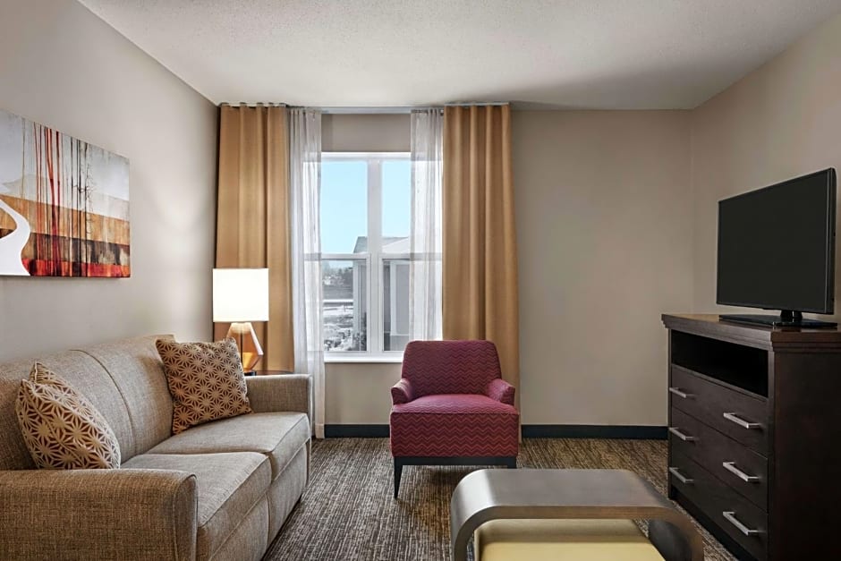 Any corresponding photo may not reflect the specific accessible room type or room feature. This mobility accessible non-smoking one bedroom suite features one king bed, and an accessible bathtub. This suite has a kitchen, built to lower scale, is fully equipped down to utensils; and includes a full-size refrigerator, microwave, dishwasher and twin burner stove. The dining area can easily double as workspace. This suite provides a private bedroom with a HDTV and a separate living area features a full-size sleeper sofa, chair and HDTV. All of our suites keep you connected with complimentary high-speed internet access, telephone, and alarm clock with MP3 player capabilities and pre-set local radio stations.