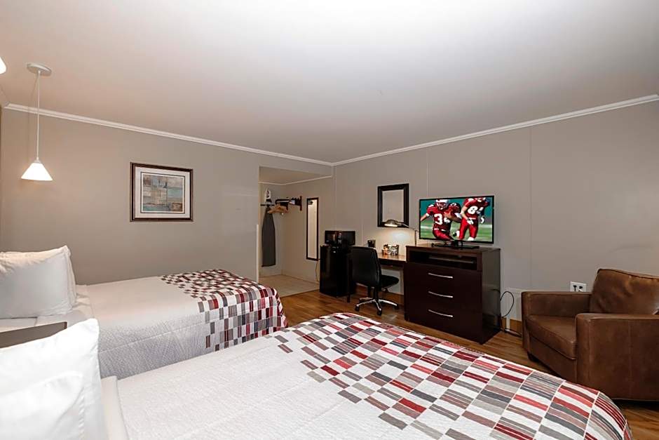 The Red Roof Inn and Suites Herkimer offers a variety of room types including double rooms and quadruple rooms. Smoking is not allowed in any of the rooms. The bed sizes range from queen to king, and the room sizes range from 280 sqft to 452 sqft. The rooms can accommodate 2 adults and 1 child or 2 adults and 3 children.