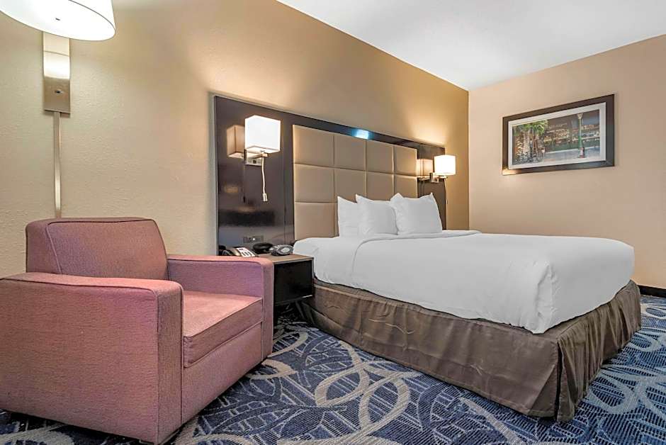 The Comfort Inn & Suites Liverpool-Clay offers a variety of room options including suites and standard rooms. The rooms can accommodate different numbers of adults and children, with the maximum being 4 adults and 2 children. All rooms are non-smoking and come with either a king size bed, queen size bed, or two queen beds.