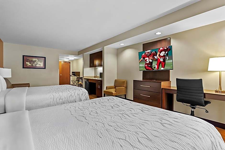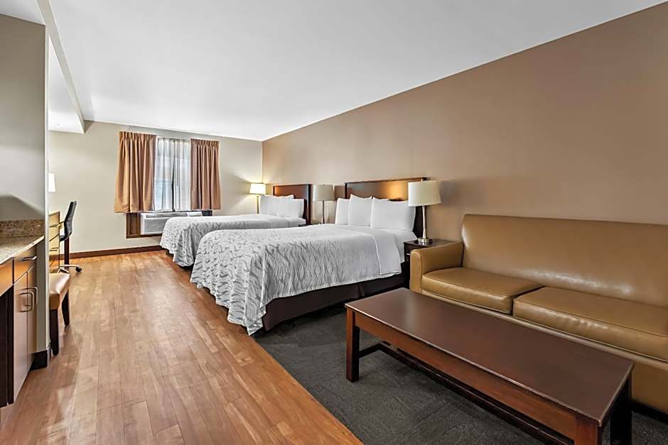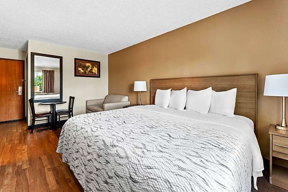 Continuing on with the hotel description, the Red Roof Inn PLUS+ & Suites Malone offers a variety of comfortable and spacious room options to suit every traveler's needs. Whether you're traveling solo or with your family, there is a room that will accommodate you. From premium rooms with upgraded bedding and snack boxes to suites with kitchenettes and sofa beds, you'll find everything you need for a relaxing stay.