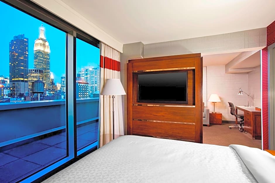 This room, with a view of the Empire State Building, features a tea/coffee maker, flat-screen TV and a work desk.