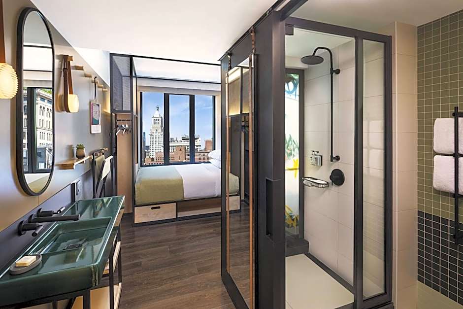 With a variety of room types to choose from, Moxy NYC East Village ensures that every traveler can find a comfortable and stylish space to call their own. From the cozy Guest rooms with 1 Queen or 2 Double beds, perfect for couples or friends traveling together, to the spacious Queen with Daybed room, which accommodates up to 3 adults and 2 children, there is a room type to suit everyone's needs. Each room is beautifully designed and provides a smoke-free environment, guaranteeing a peaceful and refreshing stay. So whether you're traveling solo, with a loved one, or with the whole family, Moxy NYC East Village has the perfect room for you.