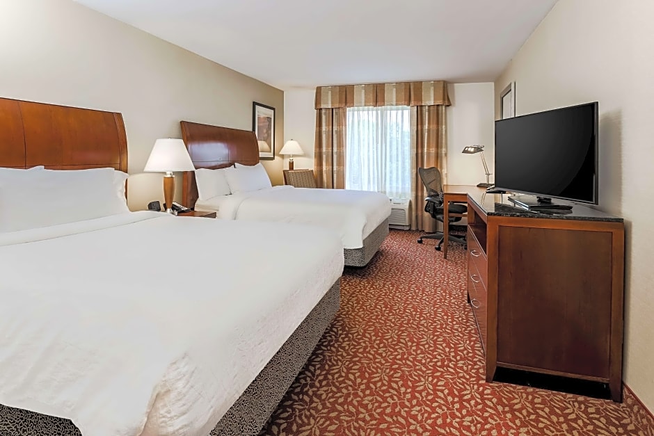 Complimentary WiFi, features desk and ergonomic chair, 32-inch HDTV. Enjoy your stay in this warm, traditional room, featuring two queen-sized Garden Sleep System beds. Make use of the complimentary WiFi access available as you work in comfort at the desk with an ergonomic chair. Sit back in the armchair, put your feet up on the ottoman, and watch on-demand movies or premium cable channels on the 32-inch flat-screen HDTV. Refresh in the bathroom, complete with separate shower and bathtub, granite vanity, and bath products. Prepare some food in the hospitality center, with a microwave, mini-refrigerator and a Keurig® brewing system coffee machine. Other amenities in this room include weekday newspaper delivery, an adjustable desk lamp, and an alarm clock radio.