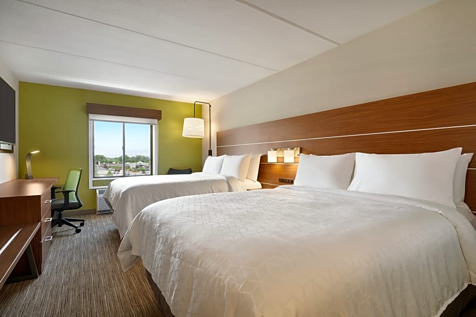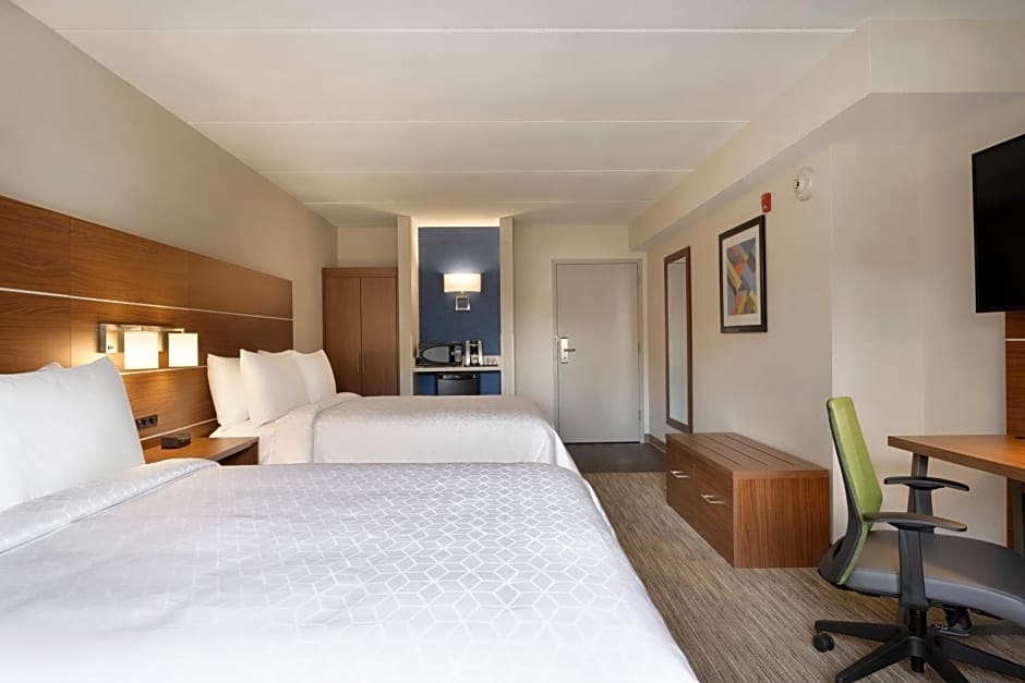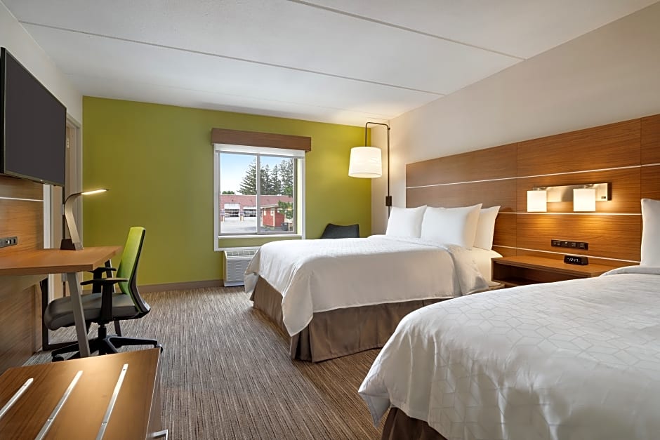 The hotel offers a variety of room types at the Holiday Inn Express - Plattsburgh. These include Standard Rooms with double occupancy and no smoking allowed, as well as Queen Rooms with Two Queen Beds that accommodate up to 4 adults and 3 children, also non-smoking. There are also King Rooms available, with mobility accessible tub or roll-in shower options, accommodating 2 adults and 1 child, and non-smoking. All rooms have a similar size of 355-366 sqft.