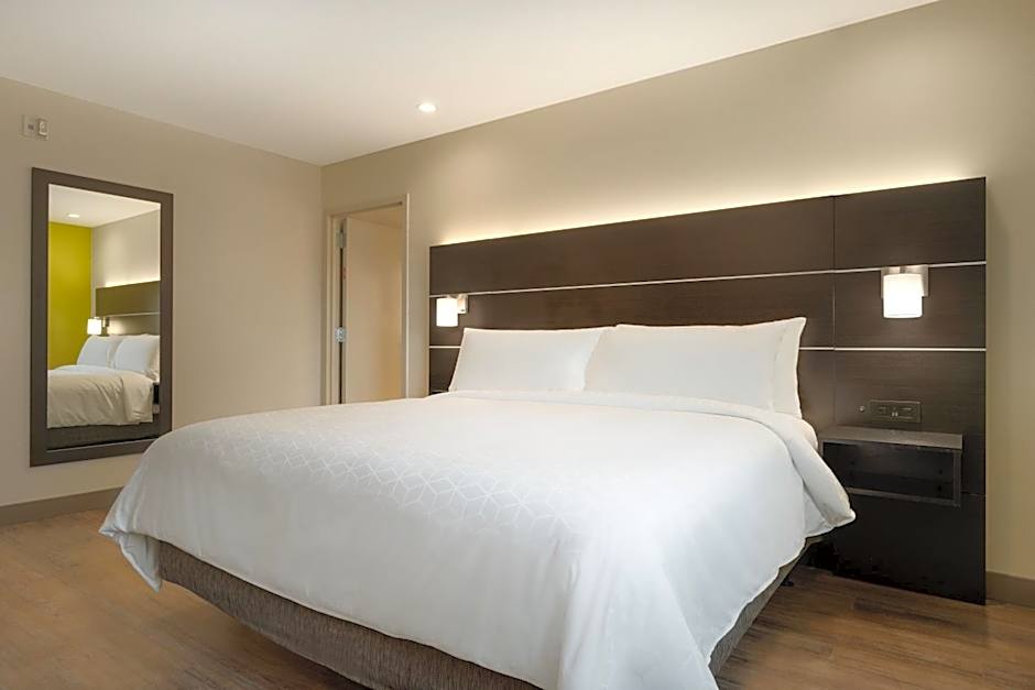 The Holiday Inn Express - Jamaica - JFK AirTrain - NYC offers a variety of room types. The rooms range from King Rooms with mobility accessible tubs, hearing accessible options, and roll-in showers, all of which are non-smoking. The Standard King Room and Queen Room with two Queen beds are also available, accommodating up to 2 adults and 1 child, and 4 adults and 3 children respectively. All rooms are approximately 301 sqft in size.