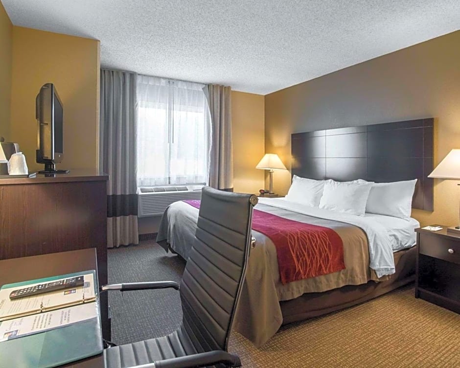 The Comfort Inn Saugerties offers a variety of room options including King Rooms, Queen Rooms with Two Queen Beds, and rooms with disability access. Smoking is not allowed in any of the rooms. The King Rooms can accommodate 2 adults and 1 child, while the Queen Rooms with Two Queen Beds can accommodate 4 adults and 3 children. The sizes of the rooms are not specified.