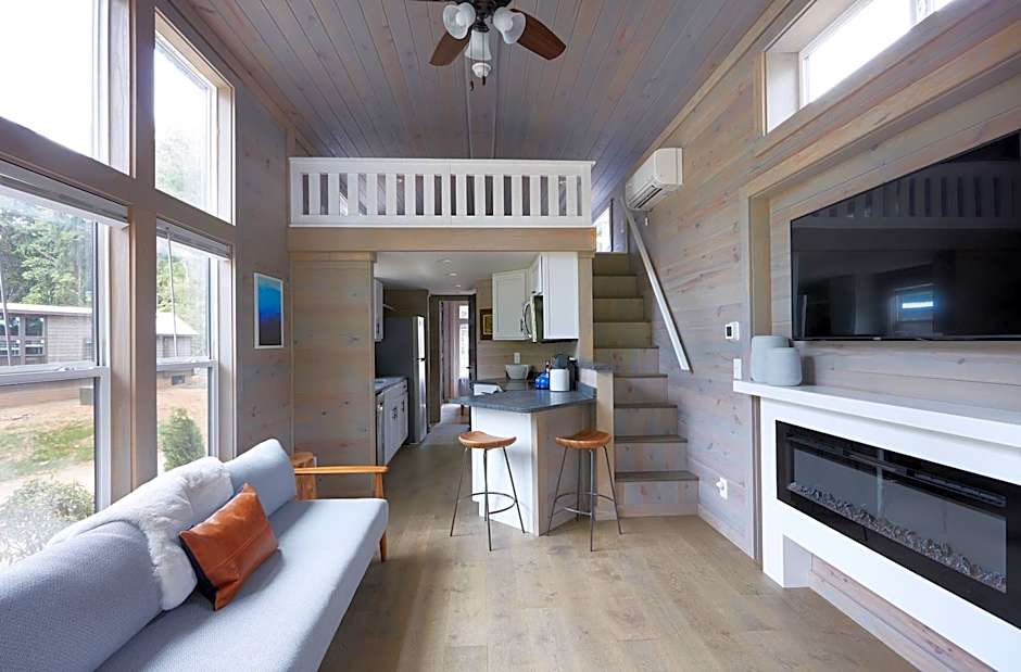 The fireplace is the standout feature of this mobile home. Boasting a private entrance, this air-conditioned mobile home features 1 living room, 1 separate bedroom and 1 bathroom with a shower. Guests can make meals in the kitchen that features a stovetop, a refrigerator, a dishwasher and kitchenware. Featuring a patio, this mobile home also features a tea and coffee maker, a seating area and a flat-screen TV with streaming services. The unit has 1 bed.