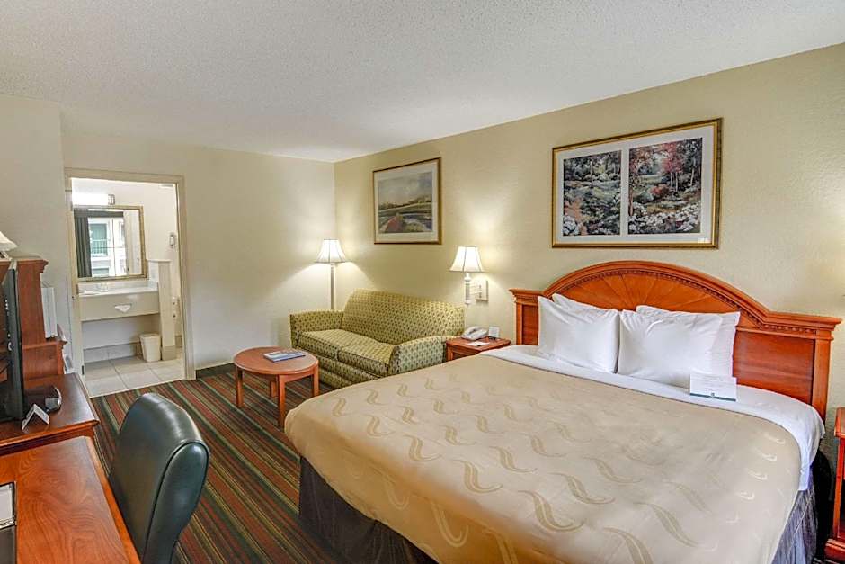 The Quality Inn & Suites Biltmore East offers various types of rooms including King Rooms, Standard King Rooms, Double Rooms with Two Double Beds, Jacuzzi King Suites, and a King Room with Roll-In Shower. All rooms are non-smoking and range in size from 301 to 452 square feet. The occupancy capacity varies from 2 to 4 adults, with accommodation for 1 to 3 children. The bed sizes include King size beds and Double beds.