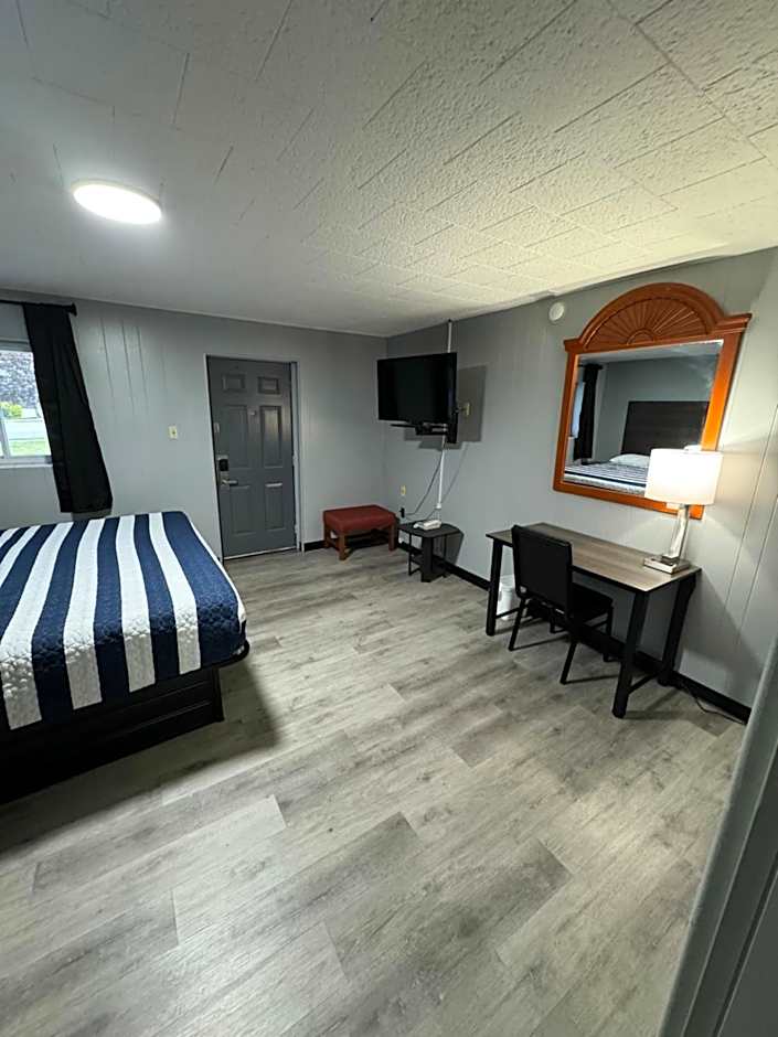 This was an older roadside motel but the owners have done many things to spruce it up nicely. While the building itself does have older 60's style bones the room was comfortable with all the amenities you would expect (fridge, microwave, coffee maker, WiFi, cable TV, AC). Shower had plenty of hot water and great flow. The rooms have been painted with a more modern look and the floors were wood parquet and not dated carpet. All the updates made it much nicer than one would expect from an older motel. Large area to walk the dog complete with waste containers. Plenty of security cameras and a well-lit parking area. The staff was very friendly and accommodating. Would definitely stay there again.