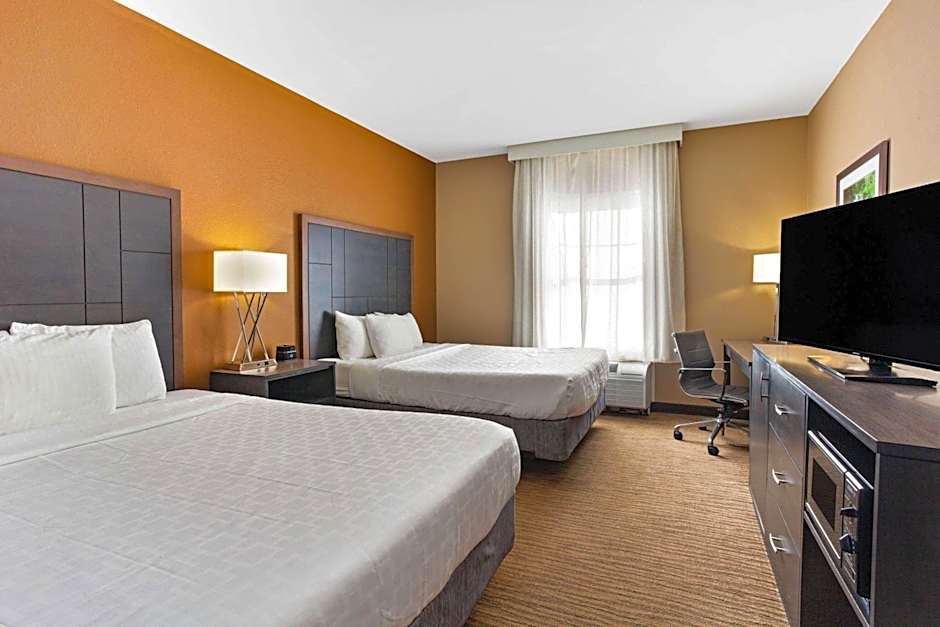 La Quinta by Wyndham Boone offers a variety of room options including Junior King Suites, One-Bedroom Deluxe Family King Suites, Queen Rooms with Two Queen Beds, Luxury King Studio Suites, One-Bedroom Deluxe Family Queen Suites, and King Rooms. All rooms are non-smoking and range in size from 301 sqft to 398 sqft. The occupancy accommodates a range of 2 to 7 adults and 1 to 4 children, depending on the room type. Some rooms feature additional accessibility features for mobility access.