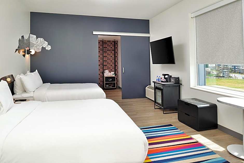 Guest rooms come in several configurations, including options with a King bed or two Queen beds, all featuring air conditioning and soundproofing. The property offers a range of room types such as Aloft, King; Savvy, King; Savvy, 2 Queen, and more, ensuring a comfortable setup for various travelers.
