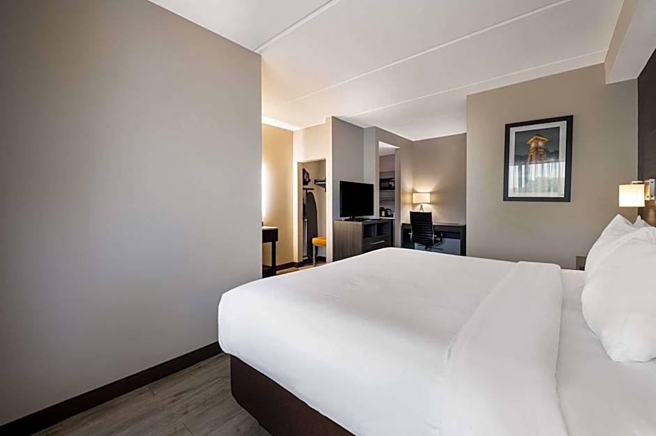 Comfort Suites Northlake offers a variety of room types including suites and doubles. The rooms range in size from 377 sqft to 388 sqft. All rooms are non-smoking and accommodate different numbers of adults and children. The bed sizes vary and include options such as King size beds, Queen size beds, and Sofa beds.