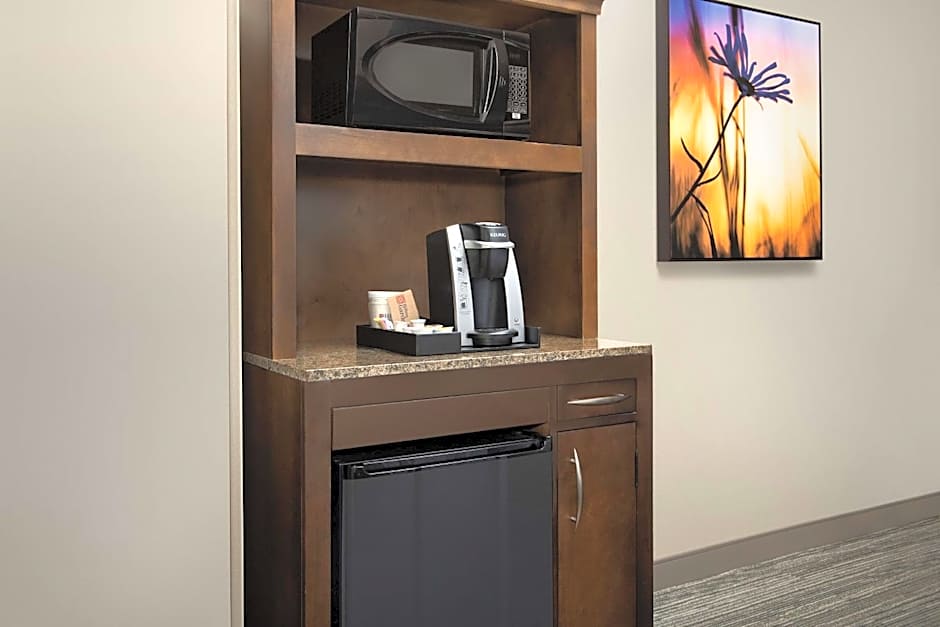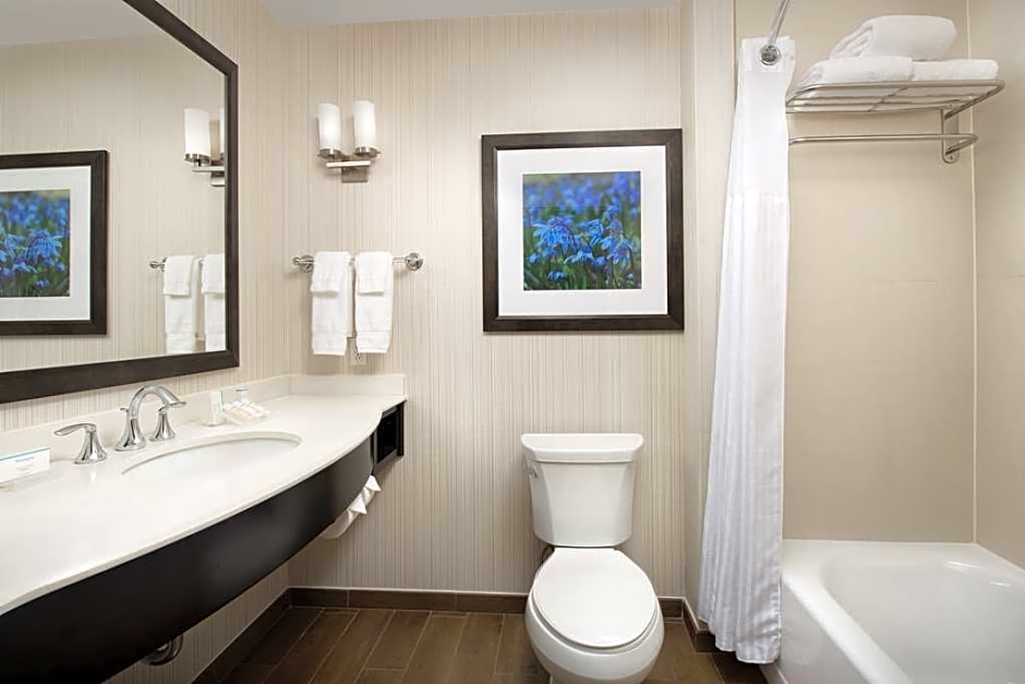 This hearing accessible suite features a king-sized bed and a visual alarm/notification devices for the doorbell and incoming telephone calls. The pursuit of the perfect stay continues with an evolution of innovative new amenities including the bed, chair, television and crisp white duvet. Each room also features a separate living area with sofa bed and HDTV. The ergonomic desk chair is good for your back and better for work. Enjoy your favorite show on our 42-inch HDTV. There's also a microwave, refrigerator and coffee/tea maker to help you feel at home. For conducting business, desk level electrical outlets make plugging in easy and our rooms ensure your productivity thanks to the spacious work desk and telephone with voicemail. We proudly offer complimentary wired and wireless guest internet access. Special touches include a coffeemaker and the Serta Perfect Sleeper bed. Any corresponding photo may not reflect the specific accessible room type or room feature.