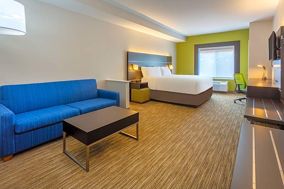 The Holiday Inn Express Arrowood offers a variety of room options. These include a King Room with Roll-In Shower - Hearing Accessible, a Standard Room with one King size bed and one Twin bed, a King Suite, a Queen Room with two Queen beds, a Leisure King Room, and a Queen Suite with two Queen beds. All rooms have a size of 355 sqft, except for the suites which are 452 sqft. Smoking is not allowed in any of the rooms. The rooms can accommodate different combinations of adults and children, ranging from 2 adults and 1 child to 6 adults and 4 children.