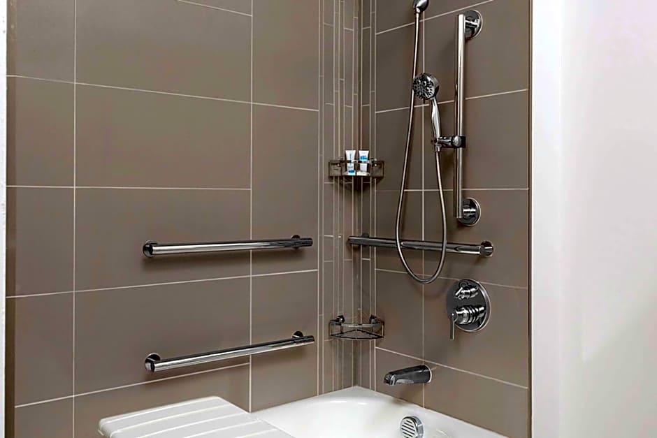 The hotel is new, modern and extremely clean. The check-in staff were very pleasant and allowed us to check-in early. They accommodated our request for feather pillows. The room itself was very clean and well kept up. The bathroom was quite large with a very nice sizable walk-in shower.