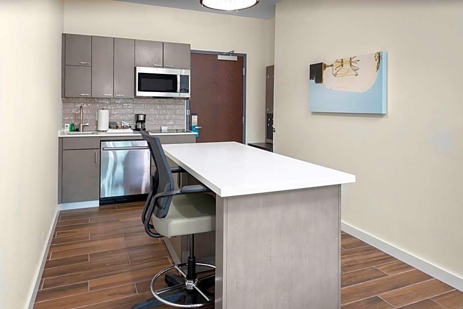 Location was perfect, and hotel was very clean. Our room had HVAC issues, and we had to wait to have it checked out. We were moved when a room became ready. The bed was quite comfortable, and it was nice to have a small bar on site. Having a kitchen with all of the essential appliances was awesome.