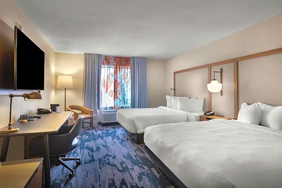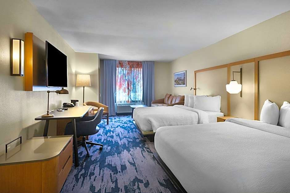 At Fairfield Inn & Suites Elizabeth City, guests can choose from a King Studio with a sofa bed, a Queen Room with Two Queen Beds, or a King Room. The King Studio and Queen Room can accommodate up to 4 adults and 3 children, while the King Room can accommodate up to 3 adults and 2 children. None of the rooms allow smoking, and the bed sizes range from a queen size bed to two double beds. The room sizes range from 280 sqft to 366 sqft.