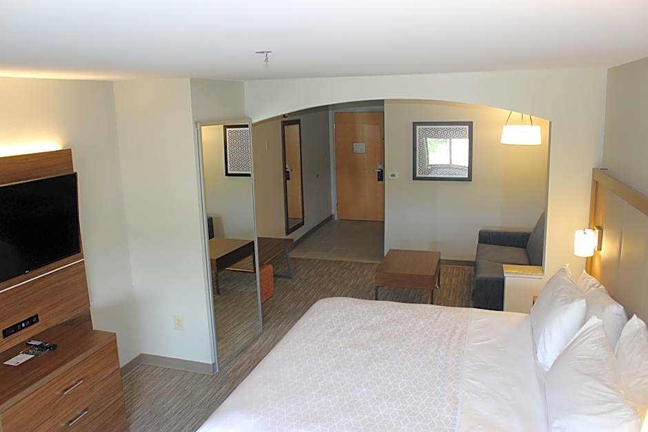 The Holiday Inn Express Forest City offers a variety of room types. These include standard king rooms with either a mobility accessible tub or a mobility accessible roll-in shower, queen rooms with two queen beds, king suites with either a mobility accessible tub or a sofa bed, and a room selected at check-in which has a double bed. All rooms are non-smoking and vary in size from 323 sqft to suite-sized. Occupancy ranges from 2 adults and 1 child to 4 adults and 3 children.