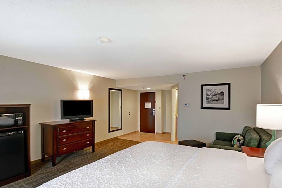 The Hampton Inn Charlotte-Gastonia offers a variety of room types including Deluxe King Rooms and King Study Rooms with a sofa bed. The rooms range in size from 301 sqft to 323 sqft. All rooms are non-smoking. The occupancy varies depending on the room type, accommodating between 2 and 5 adults, and between 1 and 4 children. The bed sizes include King, Queen, and Double beds.