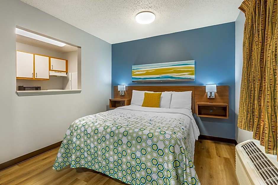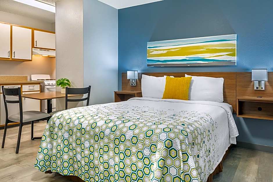 At Extended Stay America Suites - Greensboro - Wendover Ave, guests can choose between Queen Studio and Deluxe Studio rooms. Both room types are non-smoking, feature a bed size of 1 Queen, and accommodate up to 2 adults and 1 child or 4 adults and 3 children, respectively. The room sizes for both options are 301 sqft.
