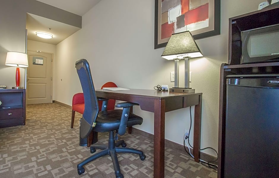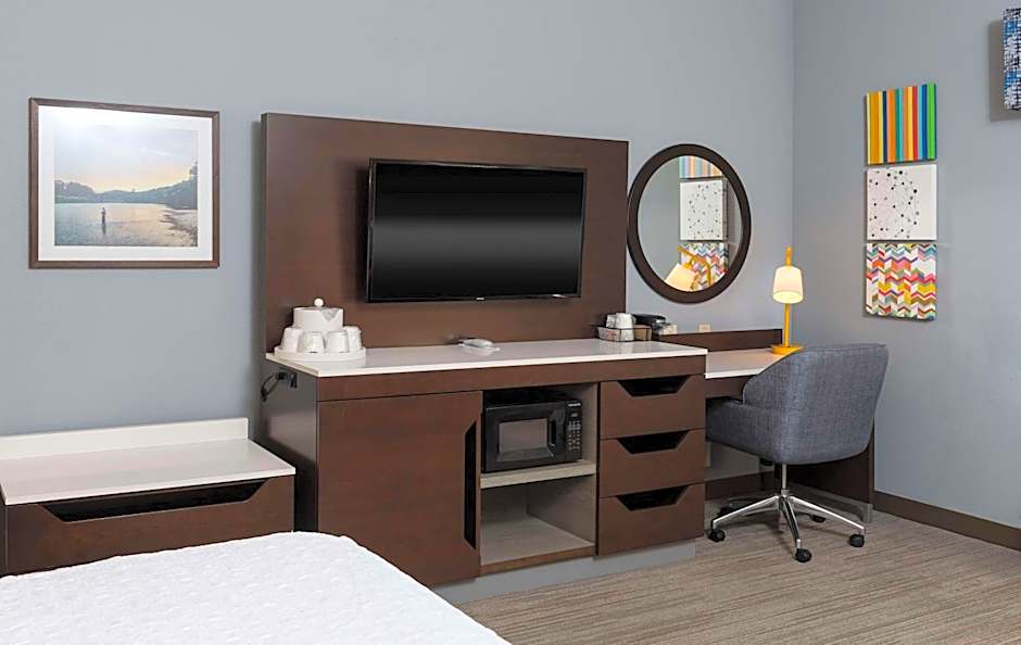 32-inch HDTV, sofa bed, work desk, coffeemaker, free WiFi access This spacious studio suite offers one king-sized clean and fresh Hampton bed®, plus a comfortable sofa bed to sleep an extra guest. Stay entertained with a variety of movies and HD channels on the 32-inch HDTV. Business amenities include a large work desk and free WiFi access. Refresh in the bathroom with a WaterPik showerhead and fluffy towels. This room also features a handy coffeemaker to help you feel at home.