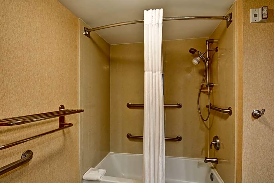 This mobility accessible, non-smoking room features one queen-sized bed, and an accessible bath tub. The room features comfortable soft seating, microwave, refrigerator, a HDTV, and easy to operate alarm clock/radio. The free WiFi will help you stay connected while on the road. If you prefer not to work at the desk, you can use the convenient lapdesk instead. You'll also enjoy the convenience of having a coffeemaker with tea service and iron/ironing board in your room. Any corresponding photo may not reflect the specific accessible room type or room feature.