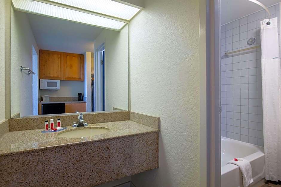 This room features a small refrigerator and microwave. A flat-screen cable TV and free WiFi are also included.