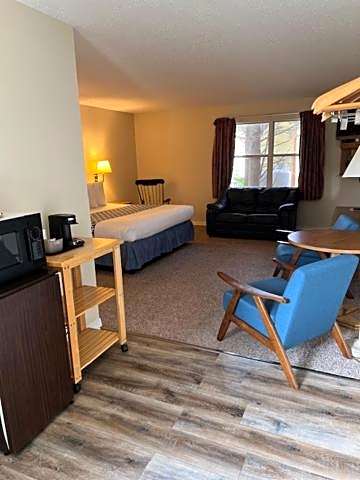 The Four Seasons Inn offers a variety of room types including Queen Rooms with Two Queen Beds Creekside and Standard Queen Rooms with Two Queen Beds, both accommodating 2 adults and 2 children. The hotel also has Standard King rooms and King Creekside rooms, each accommodating 2 adults and 1 child. For those looking for more space, the hotel offers Creekside Executive Suites which can accommodate 2 adults. Some rooms allow smoking, while others do not.