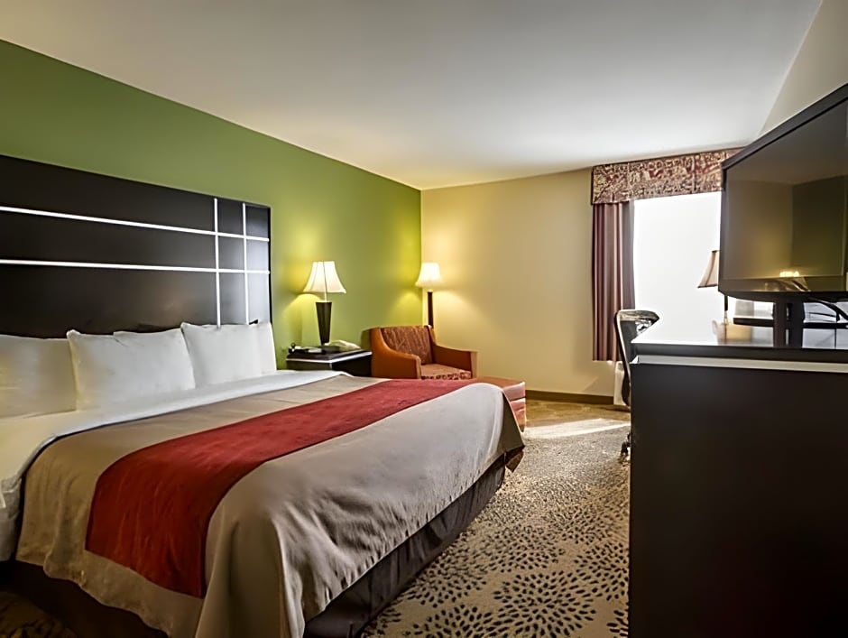 The Comfort Inn Mars Hill offers a variety of room types including Queen Rooms with Two Queen Beds - Non-Smoking, King Rooms - Non-Smoking, and Double Rooms with Two Double Beds - Accessible/Non-Smoking. Smoking is not allowed in any of the rooms. The Queen rooms and Double rooms can accommodate up to 4 adults and 3 children, while the King room can accommodate 2 adults and 1 child. Bed sizes range from Queen to King and Double.